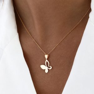 آویز طلا پروانه لیزری یک بال خالی و یک بال توپر